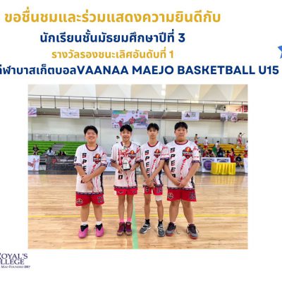ขอชื่นชมและแสดงความยินดีกับ นักเรียนชั้นมัธยมศึกษาปีที่ 3 ได้รับรางวัลรองชนะเลิศ อันดับที่ 1 การแข่งขันกีฬาบาสเก็ตบอล VAANAA MAEJO BASKETBALL U15 จัดโดย กองพัฒนานักศึกษา โดยงานกีฬา ร่วมกับชมรมบาสเกตบอลแม่โจ้