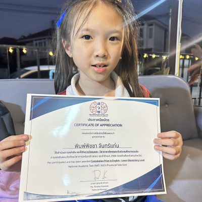 ขอชื่นชมและร่วมแสดงความยินดีกับ เด็กหญิงพิมพ์พิชชา จันทร์แก่น ที่ได้รับรางวัลชมเชย วิชาอังกฤษ วิชาคณิตศาสตร์ และวิชาวิทยาศาสตร์ระดับประถมศึกษาตอนต้น ในการแข่งขันสอบวัดทักษะวิชาการระดับชาติ(สวช.) ประจำปี พ.ศ. 2566 จัดโดย สำนักงานโครงการสอบวัดทักษะวิชาการระดับชาติ(สวช.) ณ โรงเรียนปรินส์รอยแยลส์วิทยาลัย เมื่อวันที่ 11 พฤศจิกายน 2566