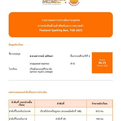 จากการแข่งขันด้านคำศัพท์และการสะกดคำ Thailand Spelling Bee, TSB2023