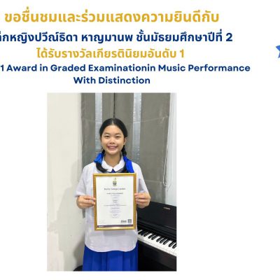 ขอชื่นชมและแสดงความยินดีกับ เด็กหญิงปวีณ์ธิดา หาญมานพ ชั้นมัธยมศึกษาปีที่ 2 ได้รับรางวัลเกียรตินิยมอันดับ 1