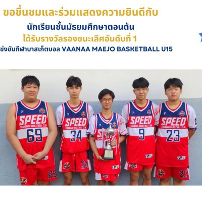 ขอชื่นชมและแสดงความยินดีกับ นักเรียนชั้นมัธยมศึกษาตอนต้น ได้รับรางวัลรองชนะเลิศ อันดับที่ 1 การแข่งขันกีฬาบาสเก็ตบอล รายการ VAANAA MAEJO BASKETBALL U15 เพื่อเฉลิมฉลองงานเกษตรแม่โจ้ครบรอบ 90 ปี ระหว่างวันที่ 16 – 24 ธันวาคม 2566 ณ อาคารกีฬาและนันทนาการพร้อมครุภัณฑ์ มหาวิทยาลัยแม่โจ้ จัดโดยกองพัฒนานักศึกษา โดยงานกีฬา ร่วมกับชมรมบาสเกตบอลแม่โจ้