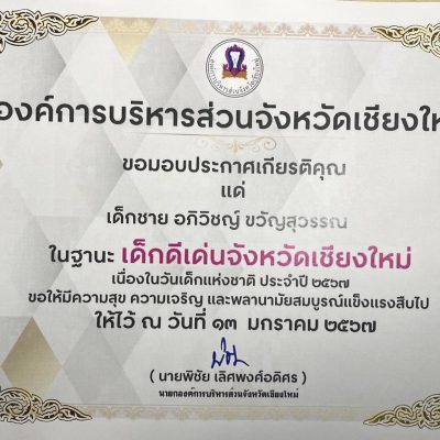 รางวัลประกาศเกียรติคุณเด็กดีเด่นจังหวัดเชียงใหม่  วันเด็กแห่งชาติ 2567