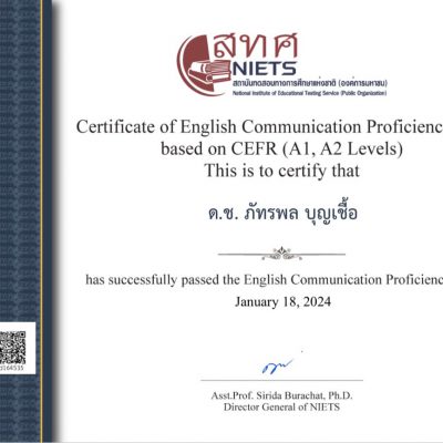 ที่ได้รับเกียรติบัตรคะแนน 96.88 คะแนน อยู่ในระดับ A2