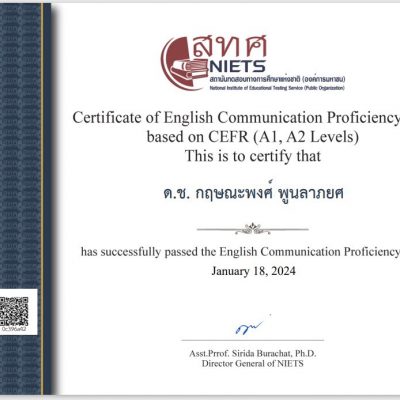 ที่ได้รับเกียรติบัตรคะแนน 96.88 คะแนน อยู่ในระดับ A2