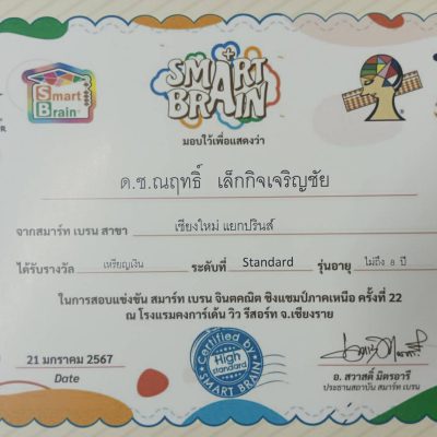 ขอชื่นชมและแสดงความยินดีกับเด็กชายณฤทธิ์ เล็กกิจเจริญชัย อนุบาล 3/6 ได้รับรางวัลเหรียญเงิน ระดับ Standard รุ่นอายุไม่เกิน 8 ปี ในการสอบแข่งขันสมาร์ท เบรน จินตคณิต ชิงแชมป์ภาคเหนือ ครั้งที่ 22 ณ โรงแรมคงการ์เด้น วิว รีสอร์ท จ.เชียงราย เมื่อวันที่ 21 มกราคม 2567