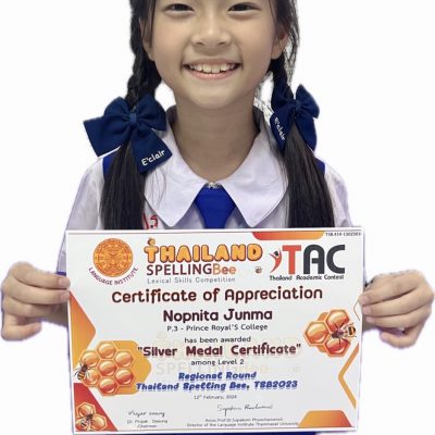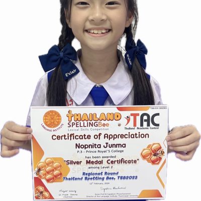 ขอชื่นชมและร่วมแสดงความยินดีกับเด็กหญิงนพนิตา จันทร์มา ชั้นประถมศึกษาปีที่ 3 ที่ได้รับรางวัลเกียรติบัตรเหรียญเงิน จากการแข่งขันด้านคำศัพท์และการสะกดคำ Thailand Spelling Bee, TSB2023 จัดโดย บริษัท อคาเดมิค คอนเทสต์ (ประเทศไทย) จำกัด ร่วมกับสถาบันภาษามหาวิทยาลัยธรรมศาสตร์ ณโรงเรียนหอพระ เชียงใหม่ เมื่อวันที่ 3 ธันวาคม 2566 (ระดับภูมิภาค)