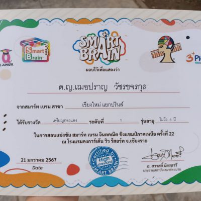 ในรายการแข่งขัน สมาร์ท เบรน จินตคณิต ชิงแชมป์ภาคเหนือ ครั้งที่ 22 เมื่อวันที่ 21 มกราคม พ.ศ.2567