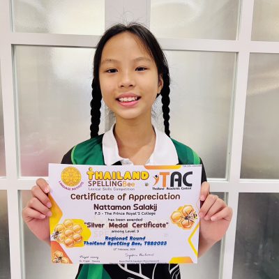 ที่ได้รับเกียรติบัตรเหรียญเงิน จาก Thailand Spelling Bee โครงการแข่งขันด้านคำศัพท์และการสะกดคำภาษาอังกฤษประจำปี พ.ศ. 2566