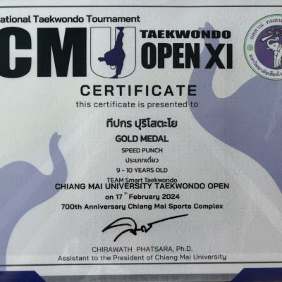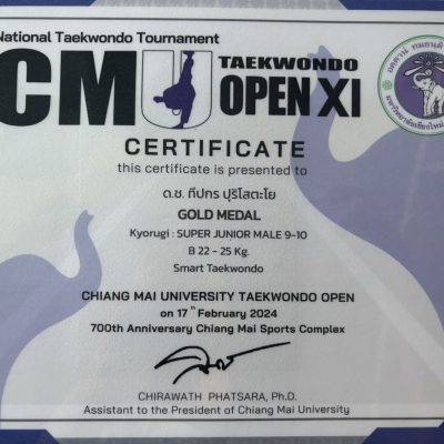 1. เหรียญทอง Kyorugi ประเภทต่อสู้ ประเภทยุวชนชาย 9-10 ปี รุ่น B น้ำหนัก 22-25 กก.