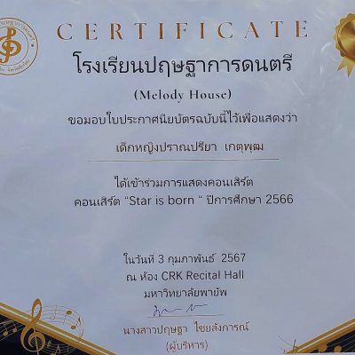 ขอชื่นชมและแสดงความยินดีกับเด็กหญิงปราณปรียา เกตุพุฒ อนุบาล 3/6 ได้เข้าร่วมแสดงคอนเสิร์ต “Star is born” ปีการศึกษา 2566 ณ ห้อง CRK Recital Hall มหาวิทยาลัยพายัพ เมื่อวันที่ 3 กุมภาพันธ์ 2567