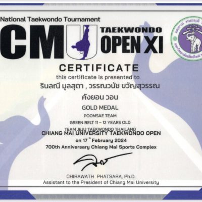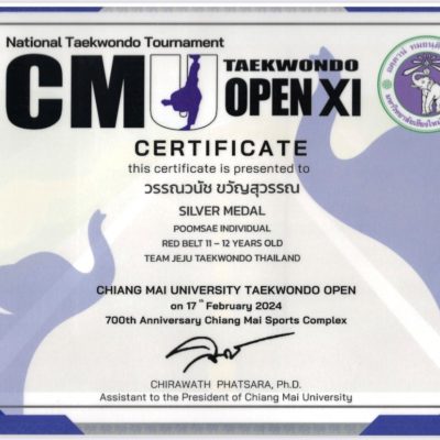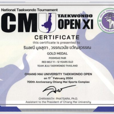 จัดโดย ชมรมเทควันโดมหาวิทยาลัยเชียงใหม่ ร่วมกับ สถาบันสมาร์ทเทควันโด และ ศูนย์กีฬาเทควันโดสนามกีฬา 700 ปี จังหวัดเชียงใหม่ เมื่อวันที่ 17 กุมภาพันธ์ 2567
