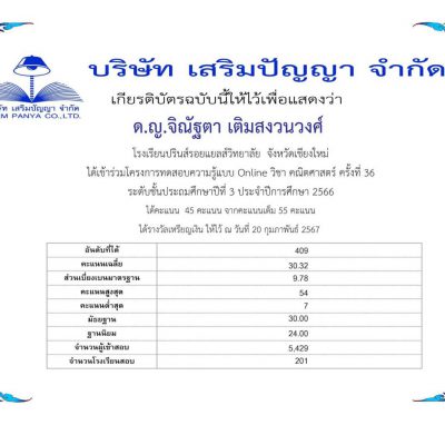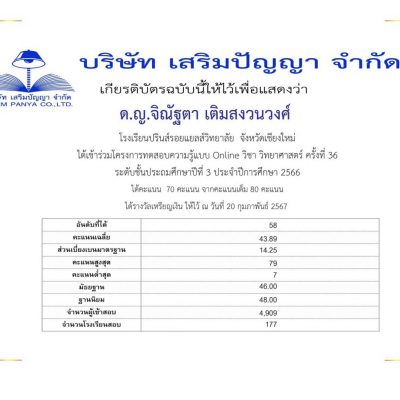 โครงการทดสอบความรู้แบบ Online (ระดับประเทศ) จัดโดย บริษัท เสริมปัญญา จำกัด