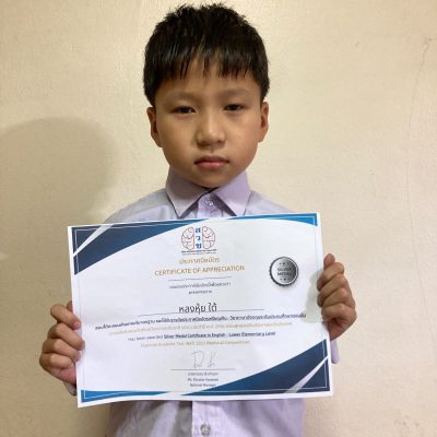 ขอแสดงความชื่นชมและร่วมยินดีกับเด็กชายหลงหุ้ย ใต้ นักเรียนชั้นประถมศึกษาปีที่ 3/1 ได้รับรางวัลประกาศนียบัตรเหรียญเงินวิชาภาษาอังกฤษ
