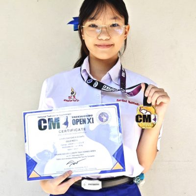 ขอชื่นชมและแสดงความยินดีกับ นางสาวธันยานิตย์ สิทธิขันแก้ว ม.5/4 ที่ได้ รางวัล Gold Medal (รางวัลชนะเลิศเหรียญทอง) Kyorugi : Junior Female 15-17 Bantamweight 44-46 kg. จากการแข่งขันเทควันโด รายการ National Taekwondo Tournament CMU Taekwondo Open XI เมื่อวันที่ 17 กุมภาพันธ์ 2567 ณ สนามกีฬาสมโภชเชียงใหม่ 700 ปี จัดโดย มหาวิทยาลัยเชียงใหม่ (ระดับประเทศ)