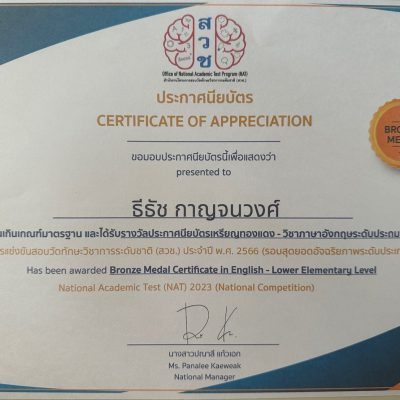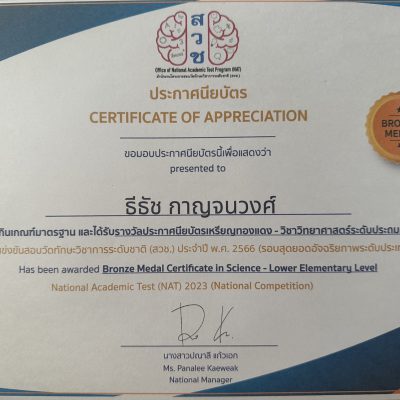 ขอแสดงความชื่นชมและร่วมยินดีกับเด็กชายธีธัช กาญจนวงศ์ นักเรียนชั้นประถมศึกษาปีที่ 3/9