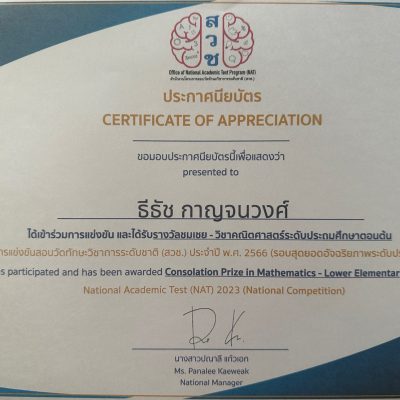 -ประกาศนียบัตรรางวัลชมเชยวิชาคณิตศาสตร์ระดับประถมศึกษาตอนต้น