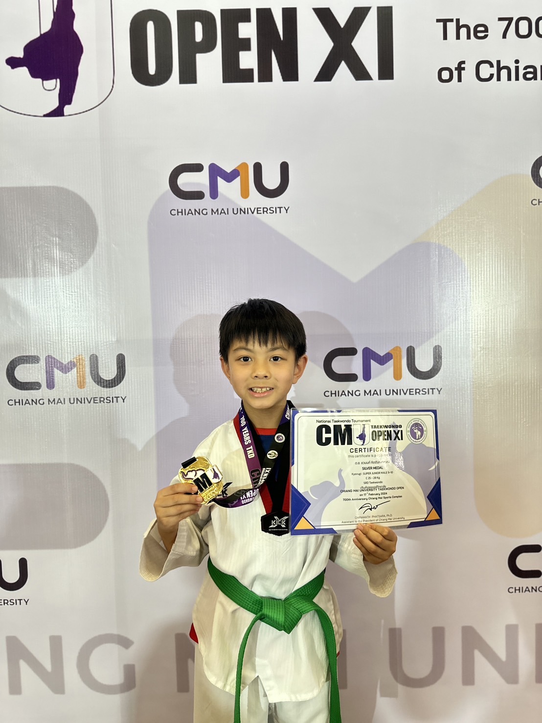 ได้รับรางวัล เหรียญเงิน ประเภท Kyorugi Class B (Male 9-10 ปี) 25-28Kg.