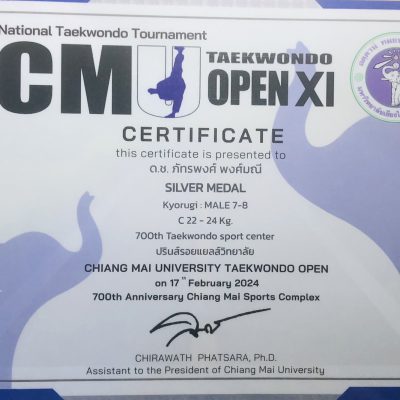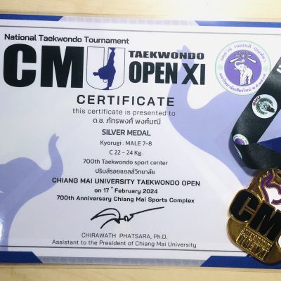 ขอชื่นชมและร่วมแสดงความยินดีกับ เด็กชายภัทรพงศ์ พงศ์มณี นักเรียนชั้นประถมศึกษาปีที่ 2/3 ได้รับรางวัล เหรียญเงิน 1 เหรียญ เทควันโด ประเภทต่อสู้ (Kyorugi) ชาย 7 – 8 ปี น้ำหนัก ไม่เกิน 20 กก.รายการ CMU Taekwondo Open ครั้งที่ 11 จัดโดย ชมรมเทควันโด มหาวิทยาลัยเชียงใหม่ ณ โรงพละ2 สนามกีฬาสมโภชเชียงใหม่ 700ปี เมื่อวันที่ 17 กุมภาพันธ์ 2567