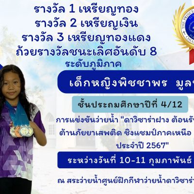 จากการแข่งขันว่ายน้ำ “ดาวิซาร่าฝาง ต้อนรับลมหนาวต้านภัยยาเสพติด ชิงแชมป์ภาคเหนือ ครั้งที่ 10 ประจำปี 2567″