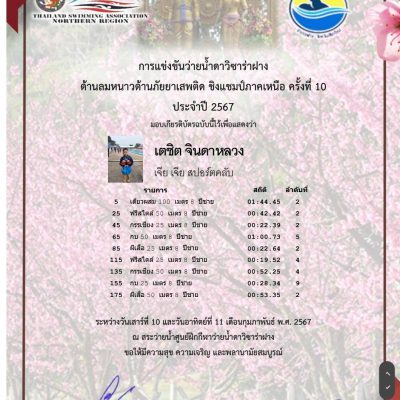 จัดโดย ศูนย์ฝึกกีฬาว่ายน้ำดาวิซาร่า อำเภอฝาง จังหวัดเชียงใหม่ระดับ จังหวัด