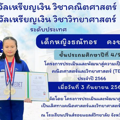 รางวัลเหรียญเงินวิชาคณิตศาสตร์ระดับชั้นประถมศึกษาปีที่ 4 และรางวัลเหรียญเงินวิชาวิทยาศาสตร์ระดับชั้นประถมศึกษาปีที่ 4