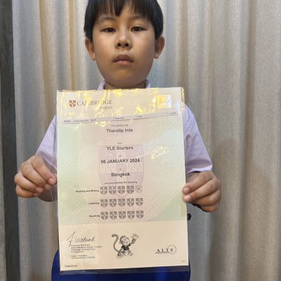 ขอชื่นชมและร่วมแสดงความยินดีกับ เด็กชายธราธิป อินต๋า นักเรียนชั้นประถมศึกษาปีที่ 2/5 ที่ได้รับรางวัล YLE Starters จากการสอบวัดความรู้ภาษาอังกฤษ Cambridge English Examination (Paper-base) จัดโดย จัดโดยโรงเรียนปรินส์รอยแยลส์วิทยาลัย ร่วมกับศูนย์สอบนอร์มิงตัน(Normington Examinations Centre, University of Cambridge ESOL) เมื่อวันที่ 6 มกราคม 2567