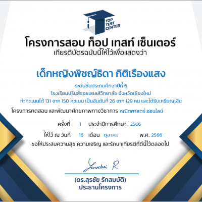 จัดโดย Top test center เมื่อวันที่ 29 กุมภาพันธ์ 2567