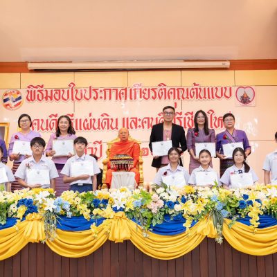 ขอชื่นชมและแสดงความยินดีกับ นายจิระวัฒน์ โตวัฒน์นิมิต  นักเรียนชั้นมัธยมศึกษาปีที่ 4   ที่ได้รับคัดเลือกให้เป็นบุคคลเป็นต้นแบบที่พึงประสงค์ เป็นแบบอย่างการทำความดีของสังคม มีภาวะผู้นำ มีศักยภาพในการสร้างกระแสการพัฒนาคนและสังคม  โดยเข้ารับใบประกาศเชิดชูเกียรติ  “ต้นแบบคนดีศรีเชียงใหม่  ประจำปี 2567 ”   เมื่อวันที่  2  มีนาคม  2567   เวลา 14.30 น.    ณ หอประชุมมหาวิทยาลัยฟาร์อิสเทอร์น  จังหวัดเชียงใหม่    จัดโดย เครือข่ายการทำงานโครงการคนดีศรีเชียงใหม่
