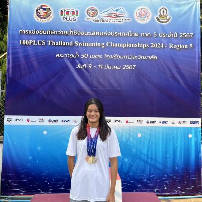ขอชื่นชมและแสดงความยินดีกับ นางสาวทอดาว เทสินทโชติ ม.6/9 ที่ได้รับรางวัลจากการแข่งขันกีฬาว่ายน้ำชิงชนะเลิศแห่งประเทศไทย ภาค 5 ระหว่างวันที่ 9-11 มีนาคม 2567 ณ สระว่ายน้ำ โรงเรียนกาวิละวิทยาลัย จังหวัดเชียงใหม่ จัดการแข่งขันโดย สมาคมกีฬาว่ายน้ำแห่งประเทศไทย ฝ่ายว่ายน้ำภาค 5