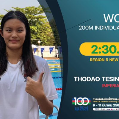 - ชนะเลิศอันดับ 1 รายการ ฟรีสไตล์ 200 เมตร