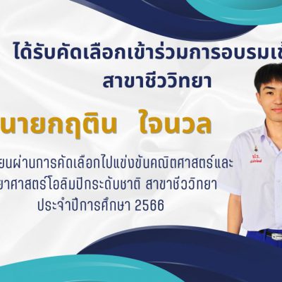 นายกฤติน  ใจนวล ได้รับคัดเลือกเพื่อไปแข่งขันคณิตศาสตร์และวิทยาศาสตร์ โอลิมปิกระดับชาติ ประจำปีการศึกษา 2566 สาขาชีววิทยา