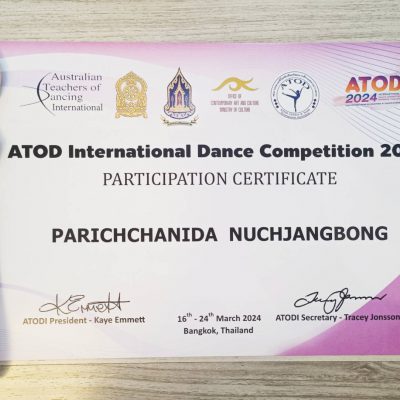 - Gold Medal เหรียญทอง ( 90-100 marks) จากการแข่งขันบัลเล่ต์ ประเภท Classical Ballet Syllabus Gold Star