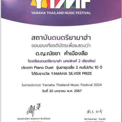 ได้รับรางวัล YAMAHA SILVER PRIZE จากการประกวด Yamaha Thailand Music Festival 2024 รอบคัดเลือก ภาคเหนือ