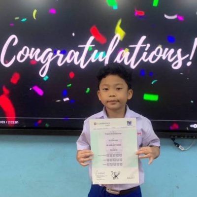 เด็กชายธภัทร อนุตระกูลชัย ป.1/2 ผลสอบระดับ YLE Movers จากการสอบวัดความรู้ภาษาอังกฤษ Cambridge English Examination (Paper-base)
