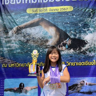 ที่ได้รับถ้วยรางวัลชนะเลิศอันดับที่ 9 และได้รับเหรียญรางวัลรวม 4 เหรียญ จากการแข่งขันว่ายน้ำเชียงใหม่แชมป์เปี้ยนชิพ