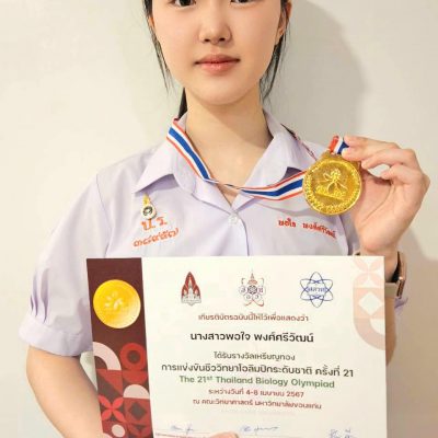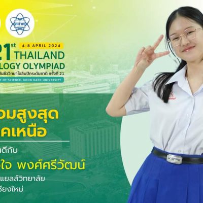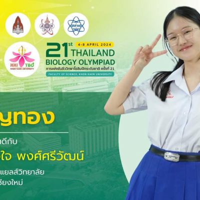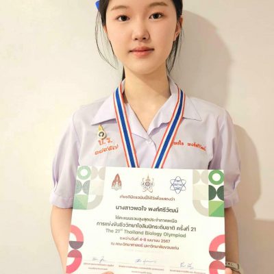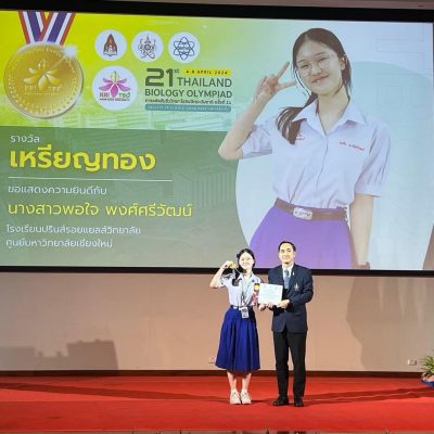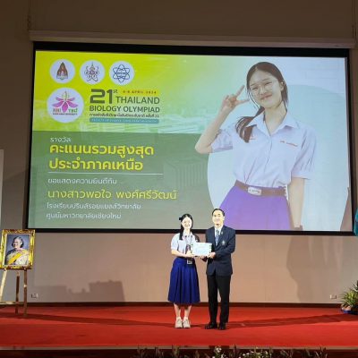 ขอชื่นชมและแสดงความยินดีกับ นางสาวพอใจ พงศ์ศรีวัฒน์ ม.6/3 ที่ได้รับรางวัลเหรียญทอง และได้คะแนนสูงสุดของภาคเหนือ จากการแข่งขันชีววิทยาโอลิมปิกระดับชาติครั้งที่ 21 (The 21st Thailand Biology Olympiad) ระหว่างวันที่ 4 – 8 เมษายน 2567 ณ คณะวิทยาศาสตร์ มหาวิทยาลัยของแก่น จัดการแข่งขันโดย มูลนิธิส่งเสริมโอลิมปิกวิชาการ และพัฒนามาตรฐานวิทยาศาสตร์ศึกษา ในพระอุปถัมภ์สมเด็จพระเจ้าพี่นางเธอ เจ้าฟ้ากัลยาณิวัฒนา กรมหลวงนราธิวาสราชนครินทร์ (สอวน.) (ระดับประเทศ)