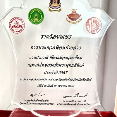 ที่ได้รับ รางวัลชมเชยอันดับที่ 1 พร้อมโล่รางวัลจากรัฐมนตรีว่าการกระทรวงวัฒนธรรม จากการประกวดฟ้อนก๋ายลาย ในงานป๋าเวณีปี๋ใหม่เมือง ปี พ.ศ. 2567 วันที่ 12 เมษายน 2567 ณ วัดพระสิงห์วรมหาวิหาร จัดโดยวัดพระสิงห์วรมหาวิหาร ร่วมกับกรมส่งเสริมวัฒนธรรม สภาวัฒนธรรมจังหวัดเชียงใหม่