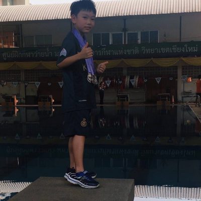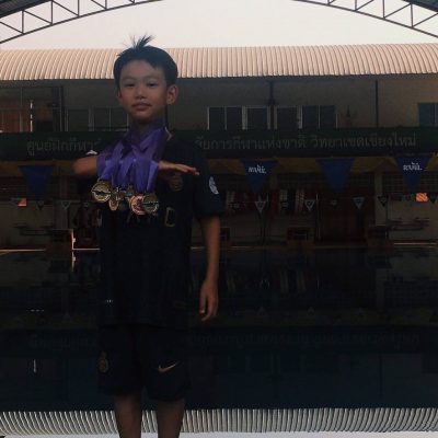 ได้รับรางวัล 3 เหรียญทอง 4 เหรียญเงิน และ 1 เหรียญทองแดง ในการแข่งขันว่ายน้ำชายอายุ 8 ปี ได้แก่