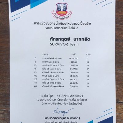 จากการแข่งขันเชียงใหม่แชมป์เปี้ยนชิพ ณ สระว่ายน้ำมหาวิทยาลัยการกีฬาแห่งชาติ วิทยาเขตเชียงใหม่ จังหวัดเชียงใหม่ ระหว่างวันที่ 30-31 มีนาคม 2567