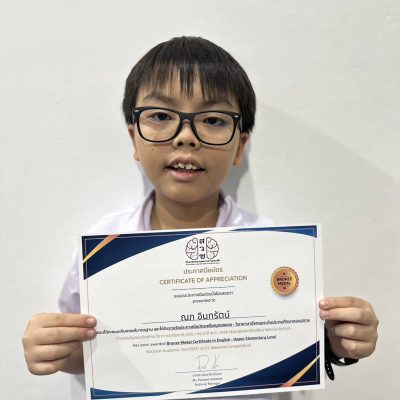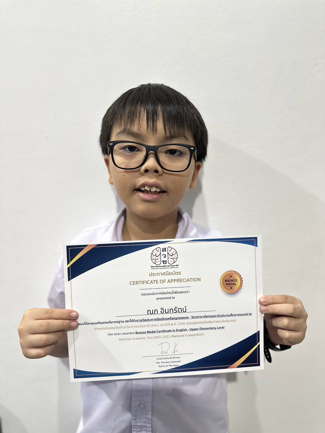 จากการได้รับระกาศนียบัตรเหรียญทองแดง วิชาภาษาอังกฤษระดับประถมศึกษาตอนปลาย ในการสอบวัดทักษะ วิชาการระดับชาติ (สวช) ปี 2566 รอบสุดยอดอัจริยภาพระดับประเทศ จัดโดย สำนักงานโครงการสอบวัดทักษะวิชาการระดับชาติ เมื่อวันที่ 20 มกราคม 2567 ณ สนามสอบโรงเรียนปรินส์รอยแยลส์วิทยาลัย