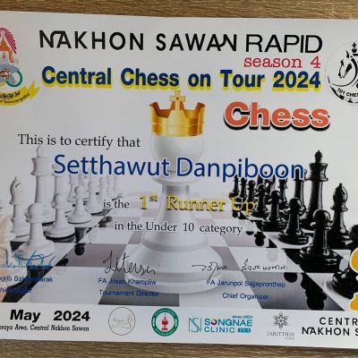 ขอชื่นชมและร่วมแสดงความยินดีกับเด็กชายเสฏฐวุฒิ ด่านไพบูลย์ ชั้นประถมศึกษาปีที่ 3/5 ที่ได้รับรางวัลรองชนะเลิศอันดับ 1 รุ่นอายุไม่เกิน10 ปี ในการแข่งขัน NAKHON SAWAN RAPID Central Chess on Tour 2024 จัดโดย ชมรมกีฬาหมากรุกสากลร่วมกับศูนย์การค้าเซ็นทรัลนครสวรรค์ ณ ศูนย์การค้าเซ็ลทรัลนครสวรรค์ เมื่อวันที่ 19 พฤษภาคม 2567 ระดับเขตพื้นที่