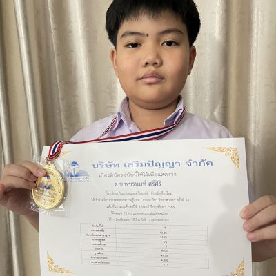 ที่ได้รับรางวัล รางวัลเหรียญทอง Score 91.25% สอบวัดความรู้ วิชาวิทยาศาสตร์ ระดับประเทศ ได้อันดับที่ 16 จากผู้เข้าสอบ 4,909