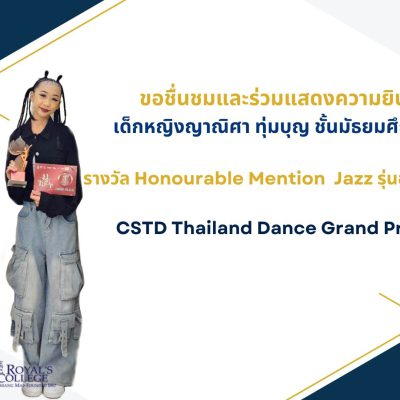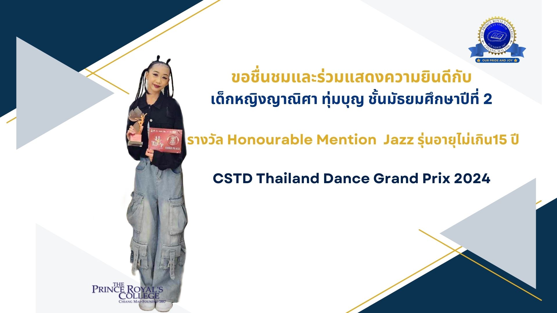 ขอชื่นชมและแสดงความยินดีกับ เด็กหญิงญาณิศา ทุ่มบุญ นักเรียนชั้นมัธยมศึกษาปีที่ 2 ได้รับรางวัล Honourable Mention Jazz รุ่นอายุไม่เกิน 15 ปี การแข่งขันเต้นระดับประเทศ CSTD Thailand Dance Grand Prix 2024 ชิงถ้วยพระราชทานสมเด็จพระกนิษฐาธิราชเจ้า กรมสมเด็จพระเทพรัตนราชสุดา สยามบรมราชกุมารี ณ โรงละครอักษรา กรุงเทพฯ เมื่อวันที่ 30 เมษายน – 5 พฤษภาคม พ.ศ.2567