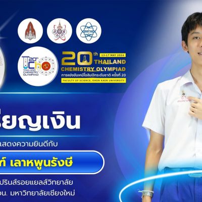 ขอชื่นชมและแสดงความยินดีกับ นายกาณฑ์ เลาหพูนรังษี ม.6/6 ที่ได้รับรางวัลเหรียญเงิน จากการแข่งขันเคมีโอลิมปิกระดับชาติ ครั้งที่ 20th The 20th Thailand Chemistry Olympiad (TChO20) ระหว่างวันที่ 13 – 17 พฤษภาคม 2567 ณ คณะวิทยาศาสตร์ มหาวิทยาลัยขอนแก่น จัดโดย คณะวิทยาศาสตร์ มหาวิทยาลัยขอนแก่น (ระดับประเทศ)