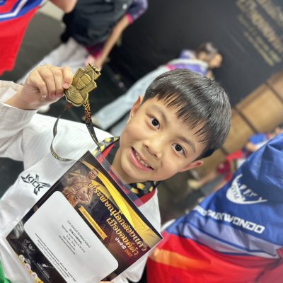 รางวัลที่ได้รับรางวัล เหรียญทอง ประเภท Kyorugi Class B (Male 9-10 ปี) 28-31 Kg.