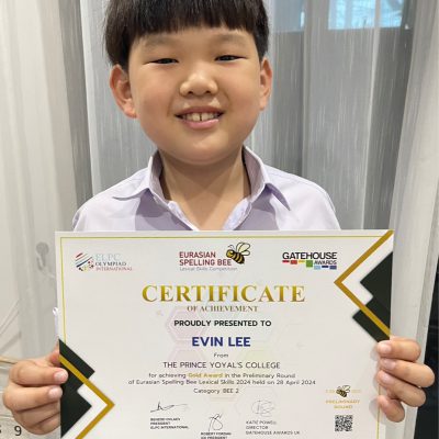 เด็กชายเอวิน สมิตินันทน์ ลี นักเรียนระดับชั้นประถมศึกษาปีที่ 4