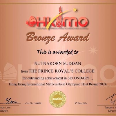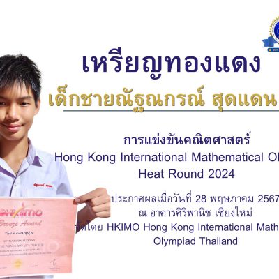 ขอชื่นชมและร่วมแสดงความยินดีกับ เด็กชายณัฐณกรณ์ สุดแดน นักเรียนชั้นมัธยมศึกษาปีที่ 2/2 ได้รับเหรียญทองแดง การแข่งขันคณิตศาสตร์ รายการ Hong Kong International Mathematical Olympiad Heat Round 2024 ณ อาคารศิริพานิช เชียงใหม่ ประกาศผลวันที่ 28 พฤษภาคม 2567 จัดโดย HKIMO Hong Kong International Mathematical Olympiad Thailand