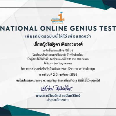 ในโครงการสอบแข่งขันวัดอัจฉริยภาพทางวิชาการ ภาษาอังกฤษ NATIONAL ONLINE GENIUS TEST