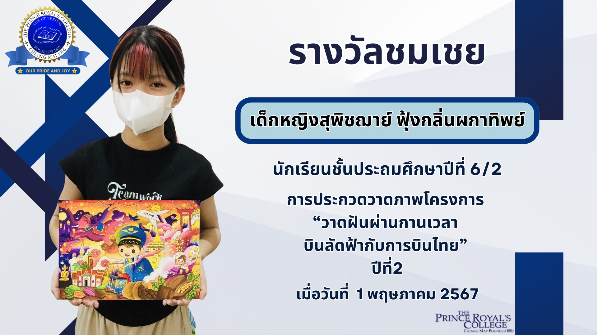 ในการแข่งขันการประกวดวาดภาพโครงการ “วาดฝันผ่านกานเวลา บินลัดฟ้ากับการบินไทย” ปีที่2