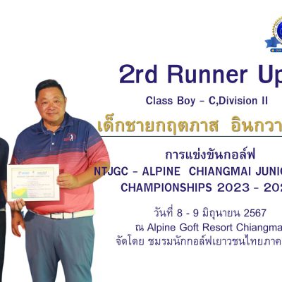 ขอชื่นชมและร่วมแสดงความยินดีกับ เด็กชายกฤตภาส อินกวา นักเรียนชั้นมัธยมศึกษาปีที่ 1/1 ได้รับรางวัล2rd Runner Up Class Boy – C,Division II การแข่งขันกอล์ฟ รายการ NTJGC – ALPINE CHIANGMAI JUNIOR GOLF CHAMPIONSHIPS 2023 – 2024 เมื่อวันที่ 8-9 มิถุนายน 2567 จัดโดย ชมรมนักกอล์ฟเยาวชนไทยภาคเหนือ